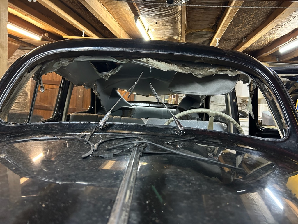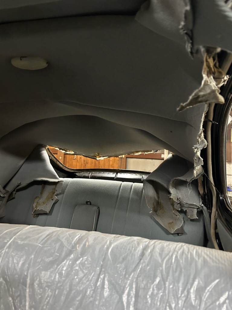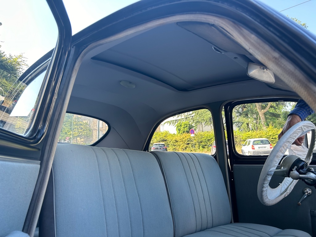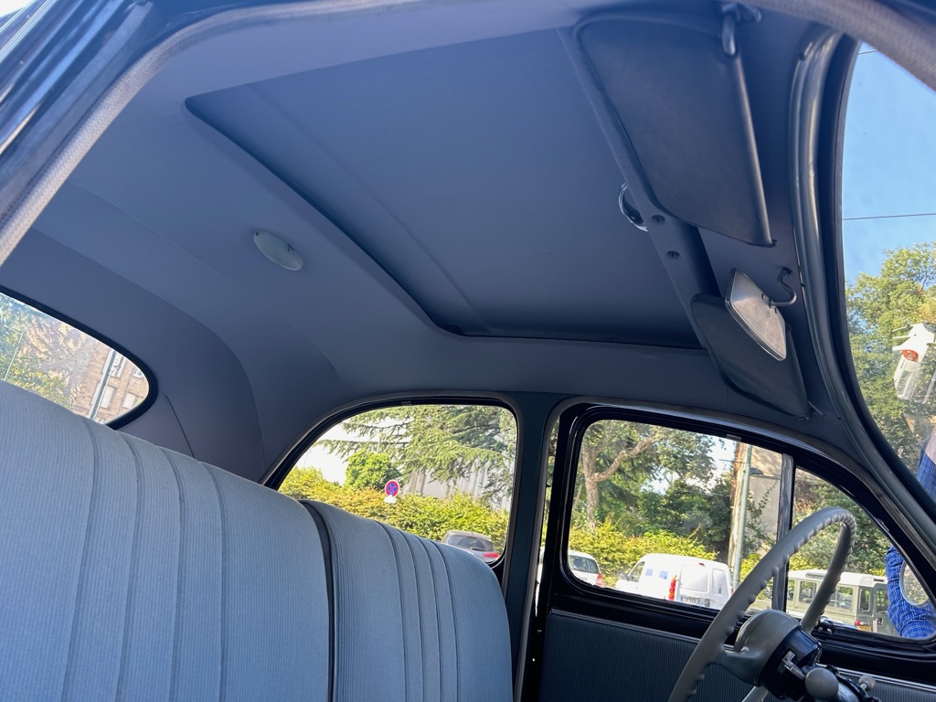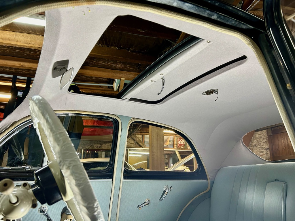 Confection et pose d’un ciel de toit en drap de laine sur une PEUGEOT 203 de 1954