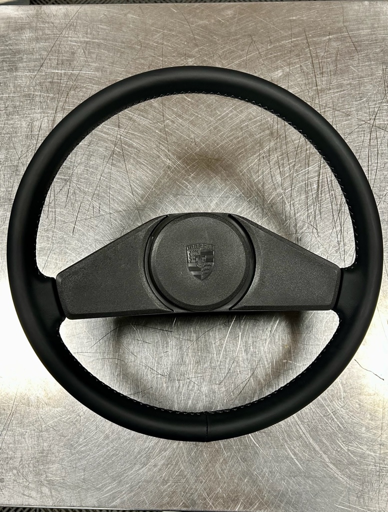 Confection sur mesure d’une coiffe en cuir pour le volant de PORSCHE 924